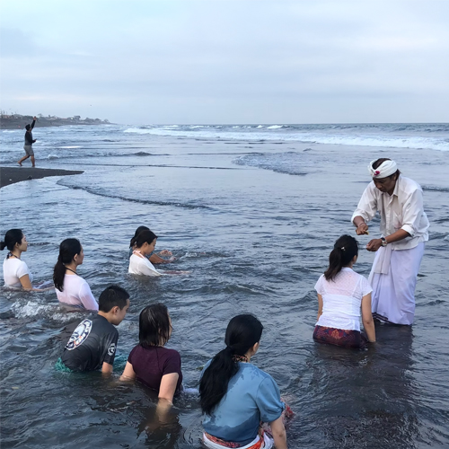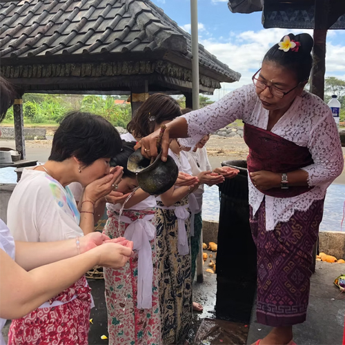 バリヒンドゥー教のお寺でお坊様によるマントラ浄化と沐浴、お経でのお祈りなど、バリ人が普段行くお寺で浄化してからスタンダードコースのイヤーコーニングの施術をします。